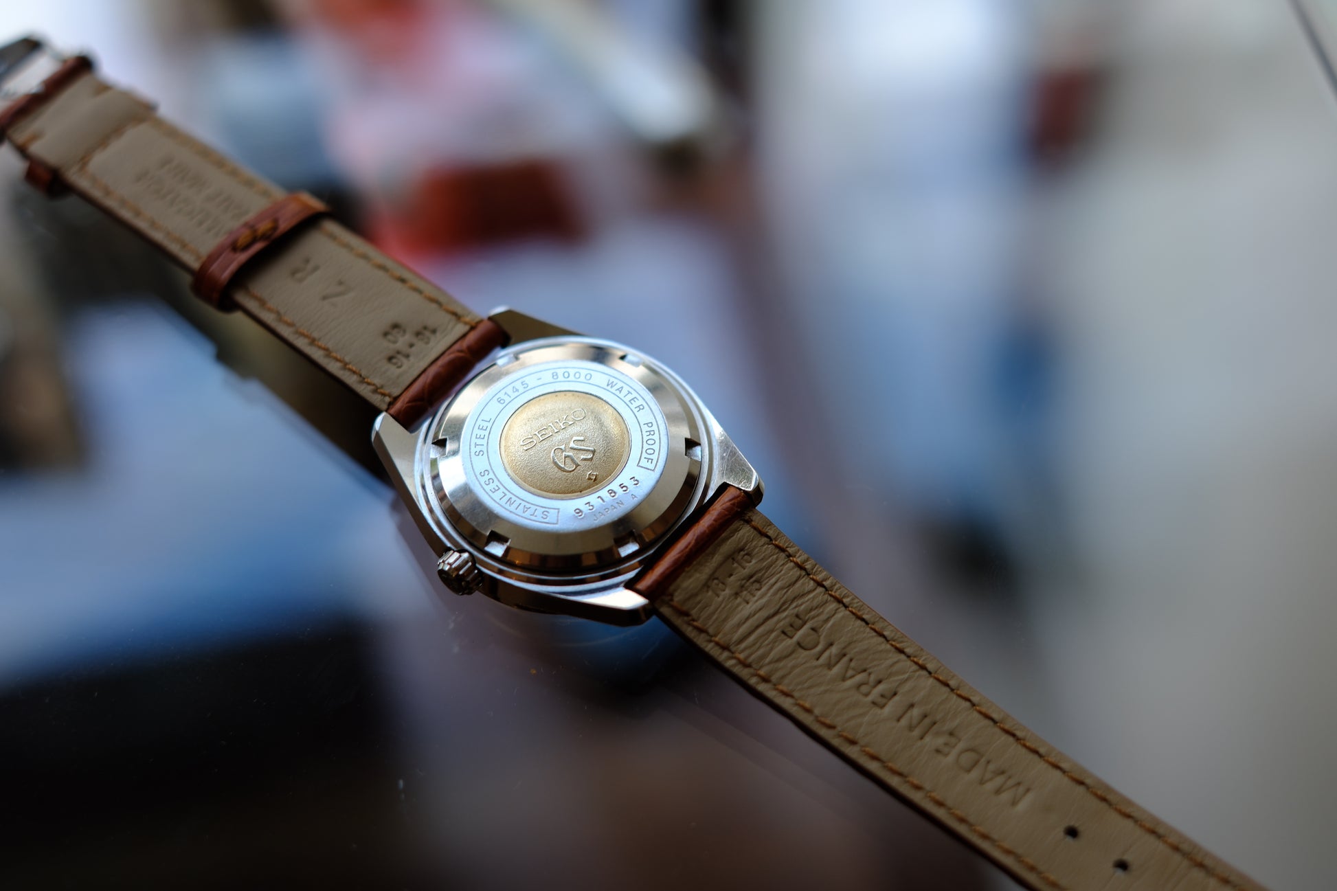 グランドセイコーらしい光沢とカッティング。海外の時計文化の影響を受け切る前のデザインのため、日本人の体格に本質的に合ったサイズであることも魅力の一つです。