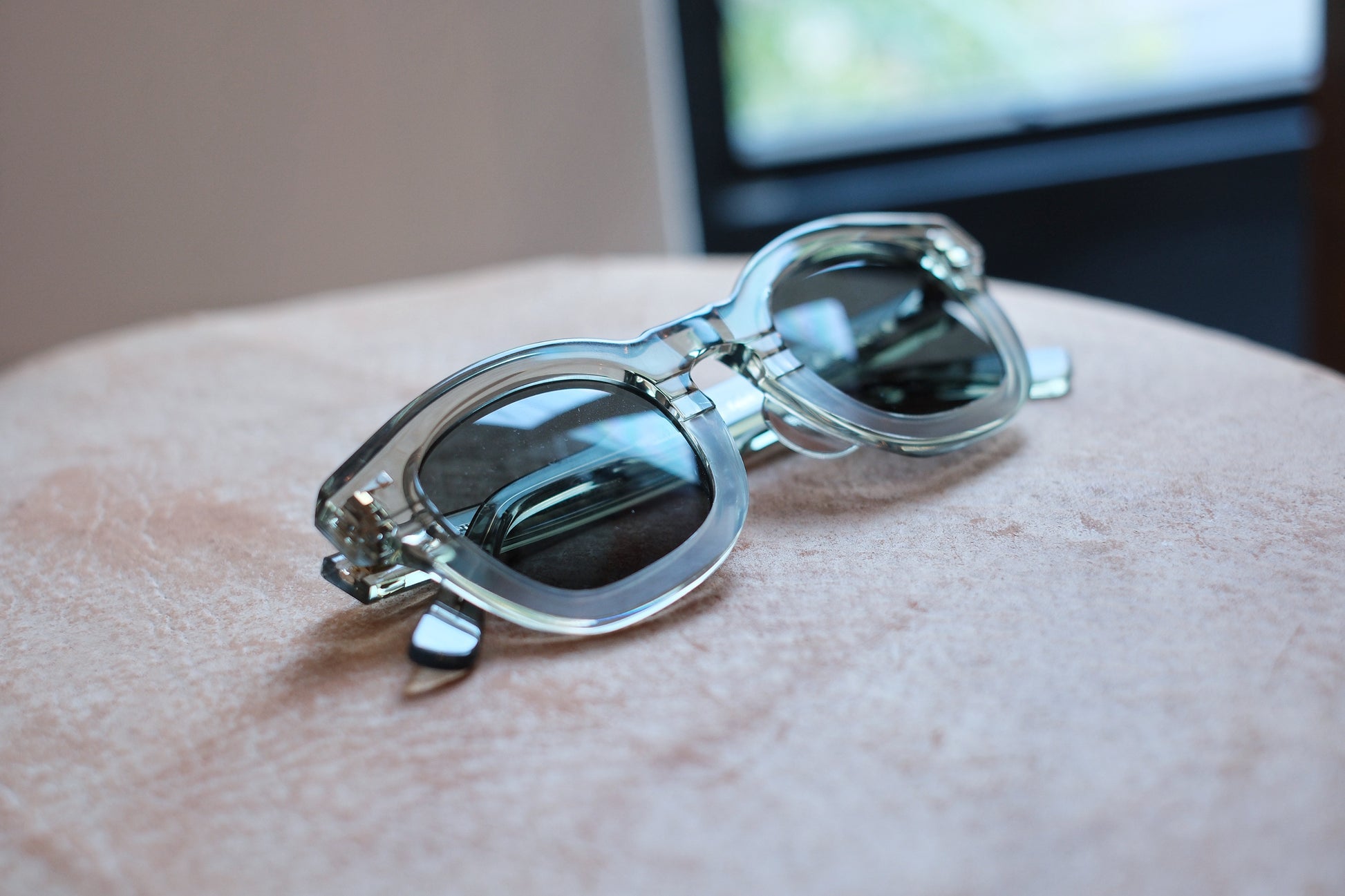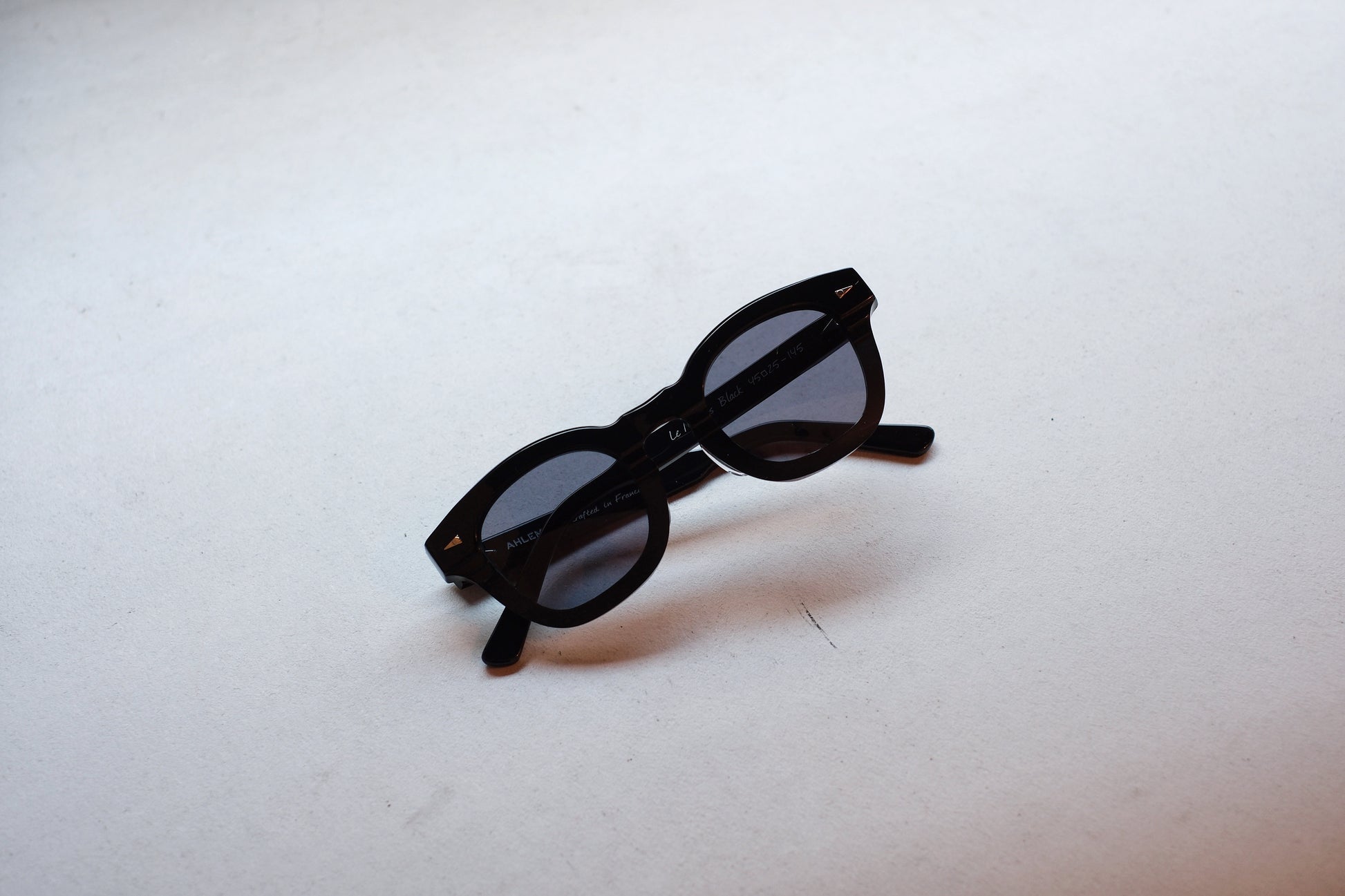 ウェリントン型のLe・Marais(ル・マレ)のサングラスタイプです。他では見たことのない、彫刻のような直線的なカッティングが施されており、Ahlemらしいモード感があります。