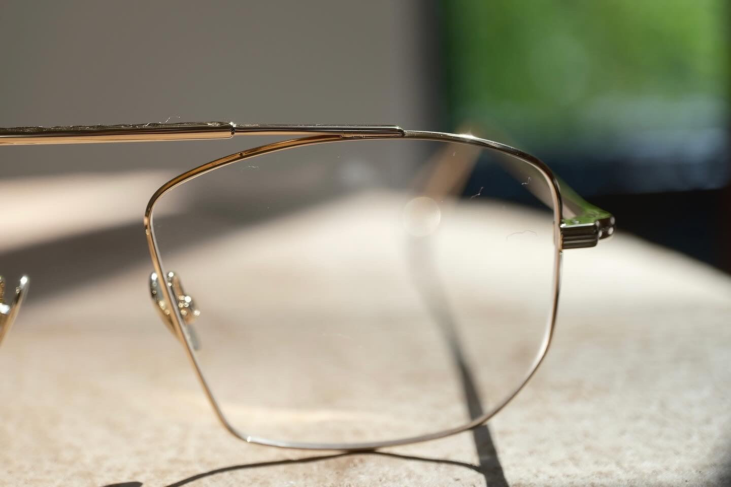 バーブリッジタイプのフレーム。メンズライクなデザインですが、アクセサリー要素の強いAhlemなので、女性がかけても素敵です。バートップには、アーレムの特徴的なディティールの一つである、マルテレと言われるハンドハンマーで打ち付ける意匠が施されており、光の当たり具合で複雑に反射して、とても美しいフレームです。