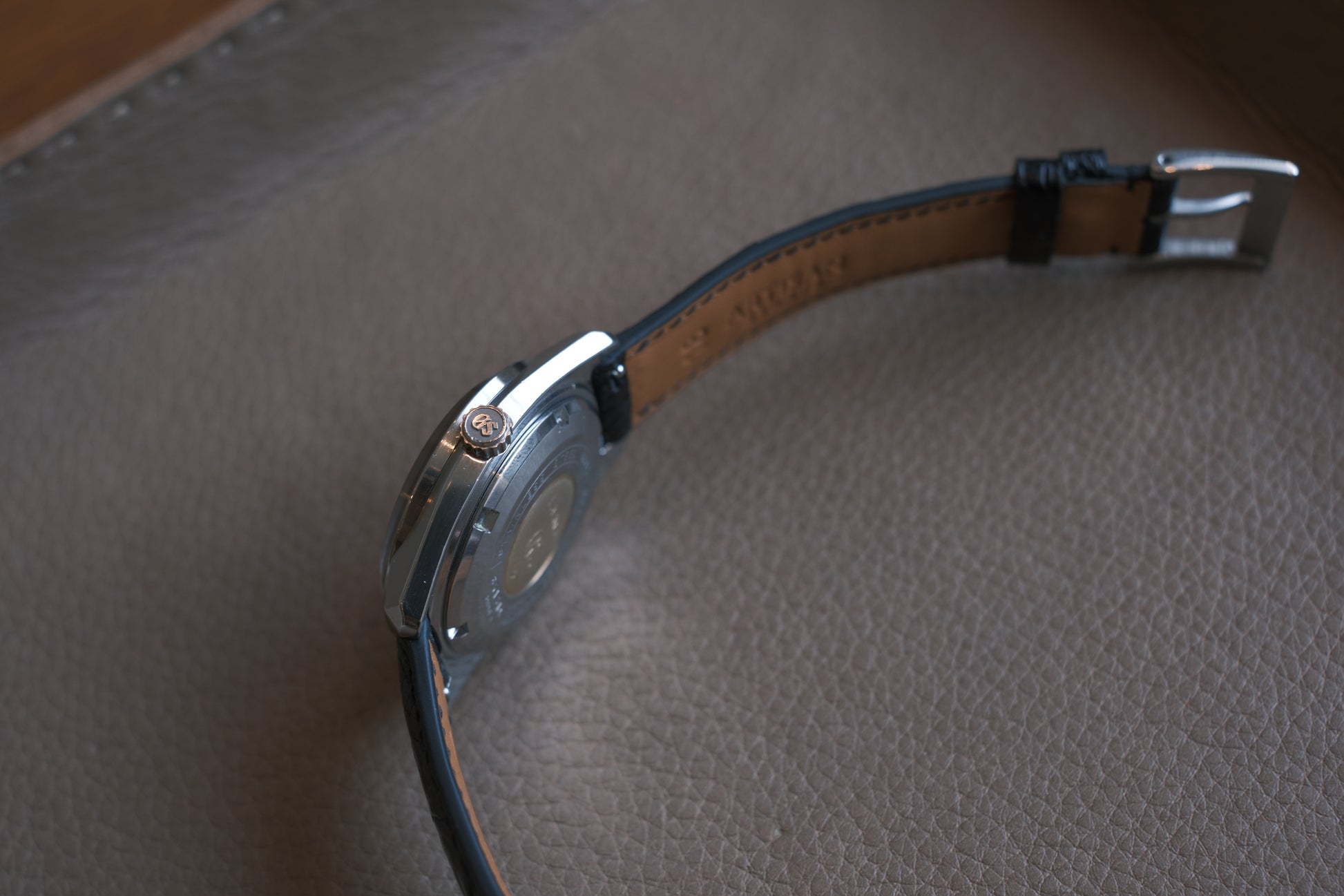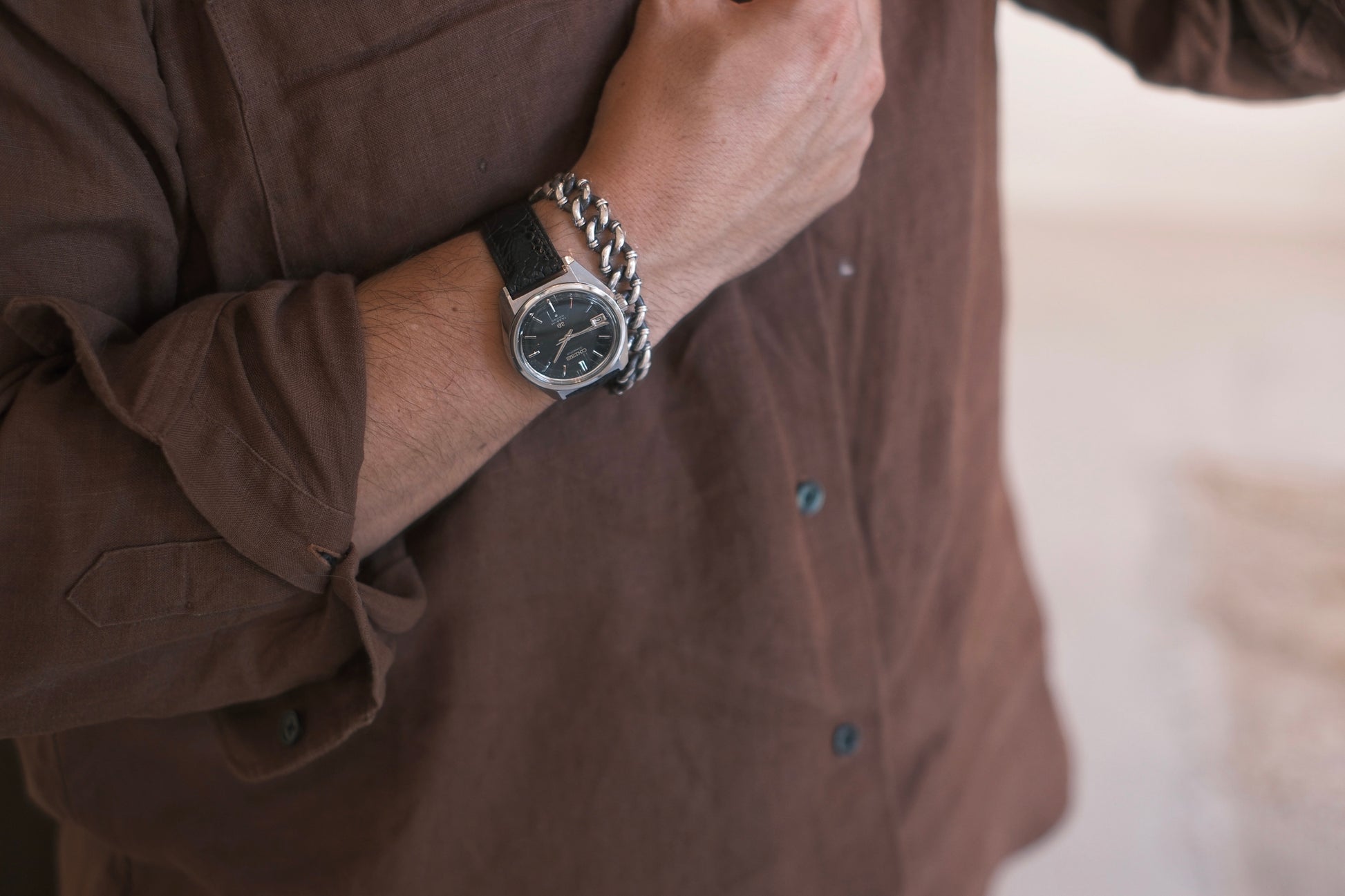 グランドセイコーらしい光沢とカッティング。海外の時計文化の影響を受け切る前のデザインのため、日本人の体格に本質的に合ったサイズであることも魅力の一つです。