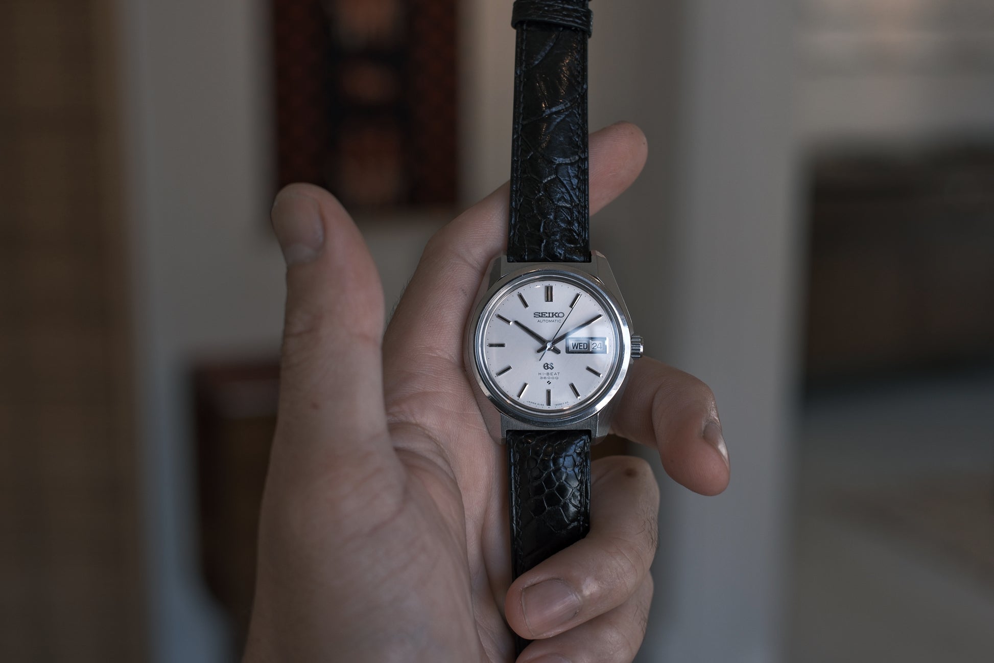 グランドセイコーらしい光沢とカッティング。海外の時計文化の影響を受け切る前のデザインのため、日本人の体格に本質的に合ったサイズであることも魅力の一つです。