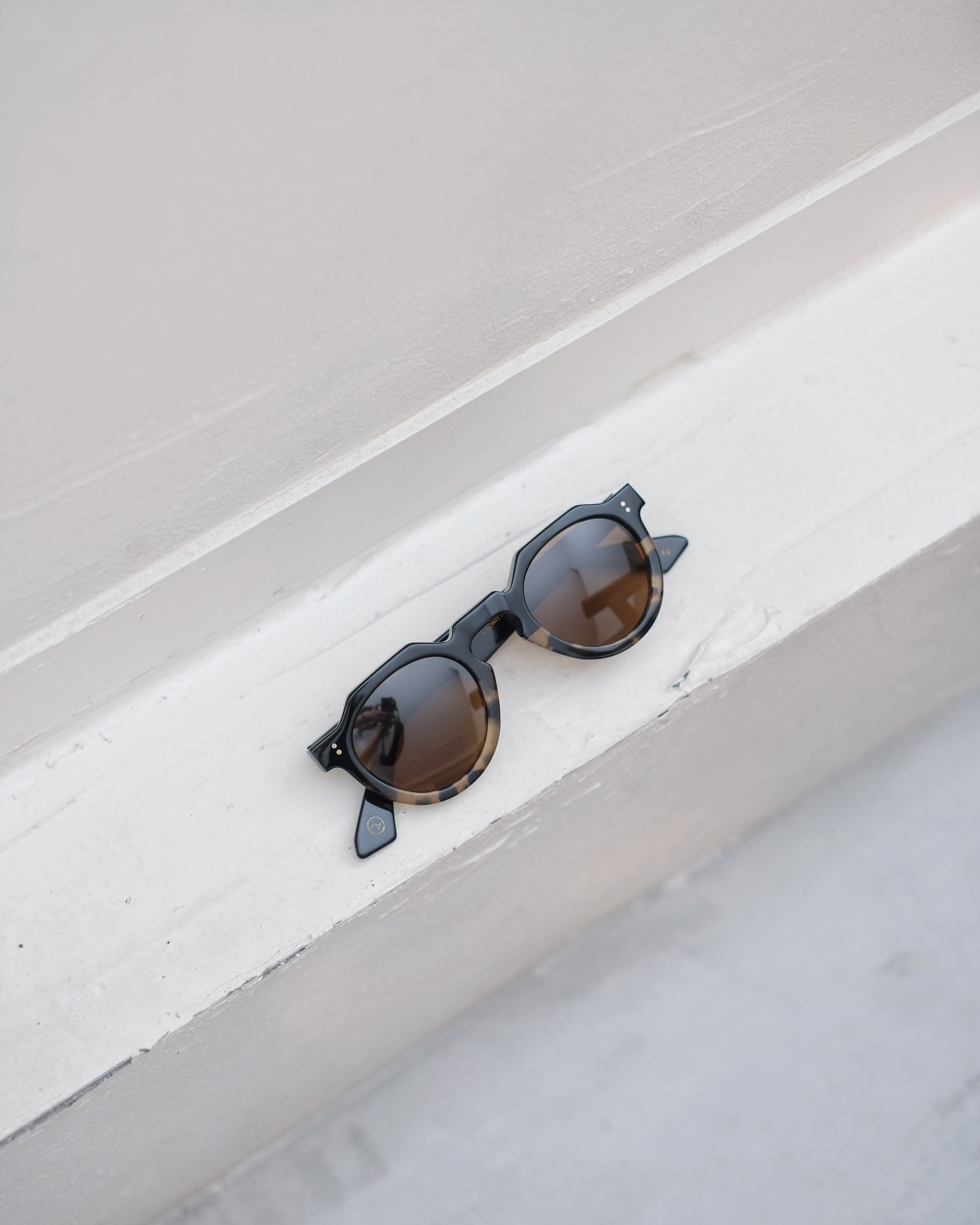 Upcycling Collectionはデットストックのアセテート生地を使用して、現在製造されているモデルです。現代にはない、とても美しい絶妙なカラーが魅力。8mmと肉厚なので、かけるだけで何だか雰囲気で出ます。