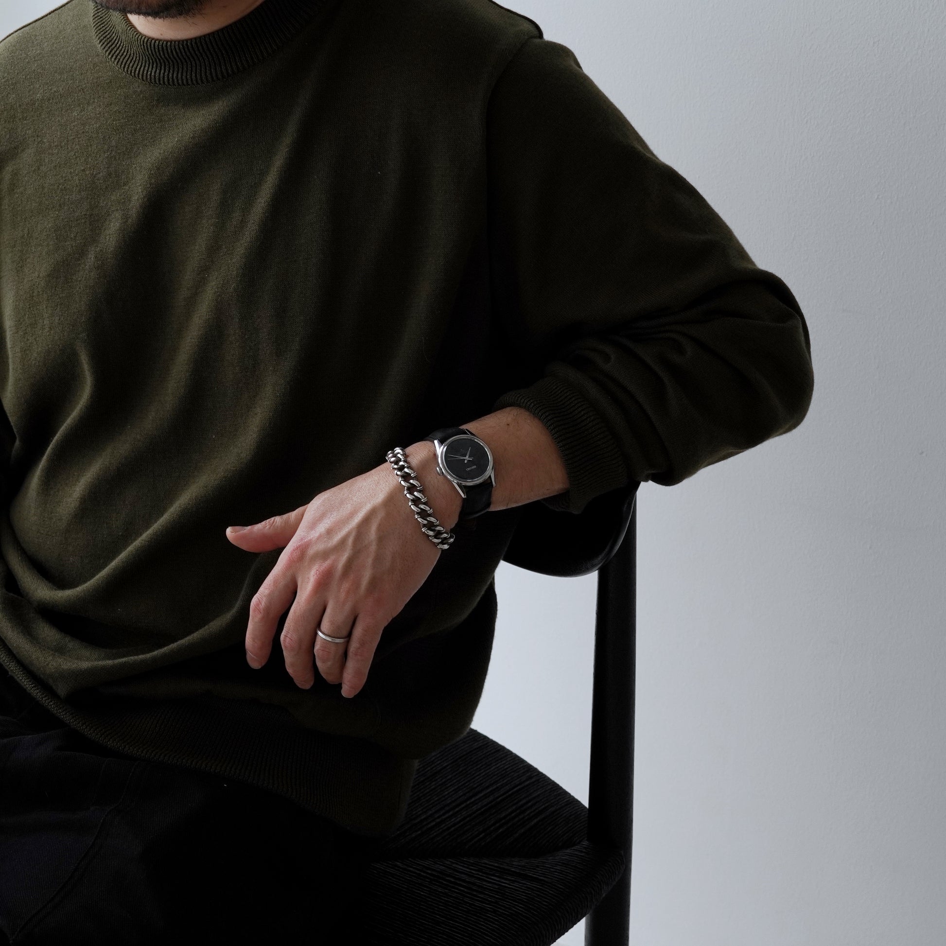 This is an original Uchimura model that has been customized from this classic piece. It has a "stealth black" finish with black lettering on a matte black dial. The lettering is faintly visible due to the contrast. This Road Marvel with a modern taste has been completed.