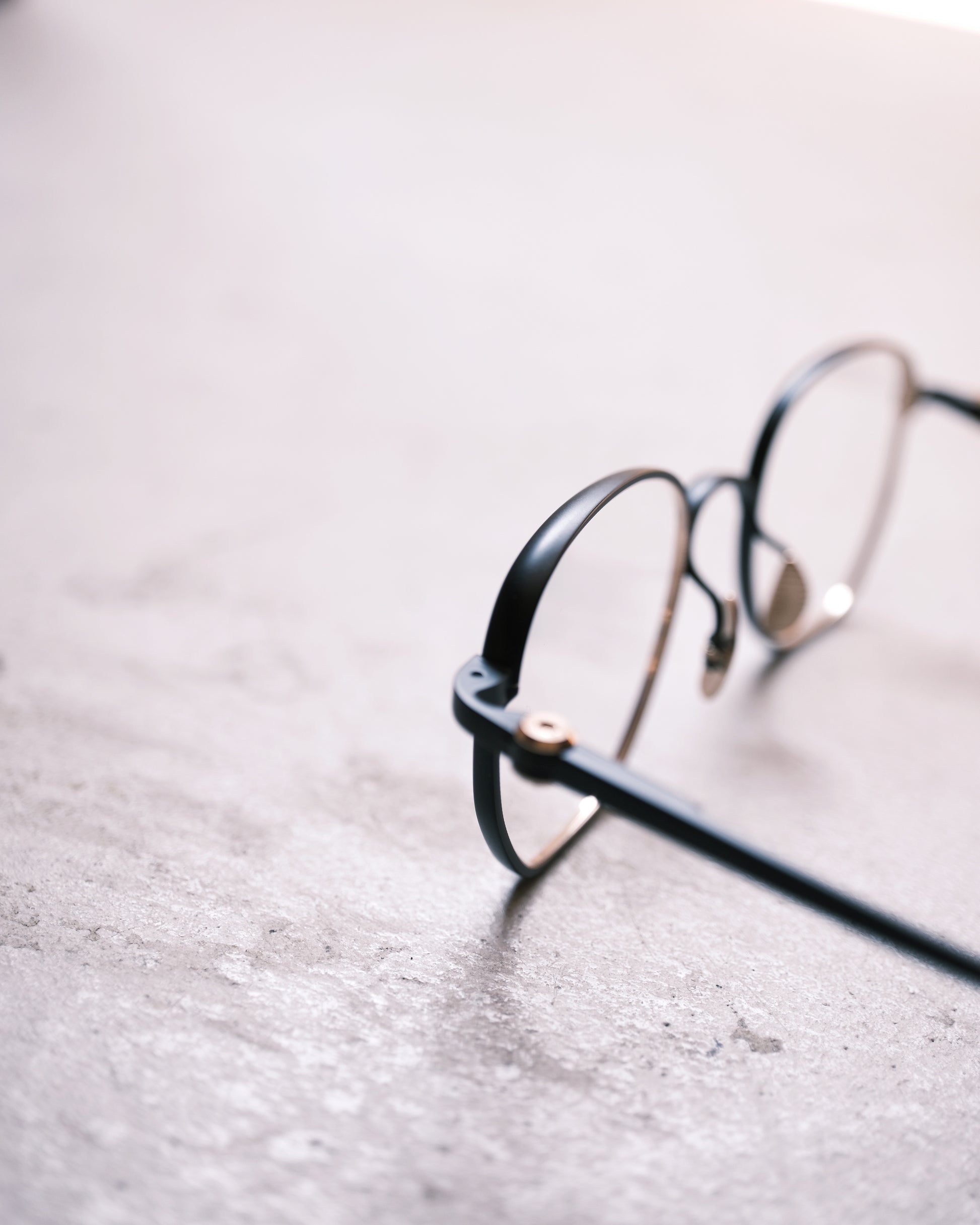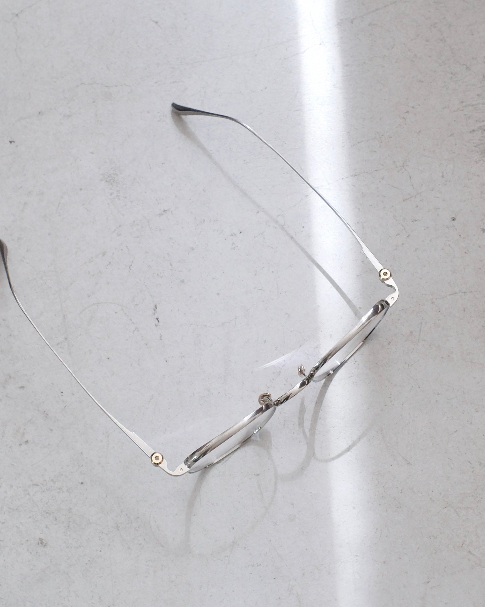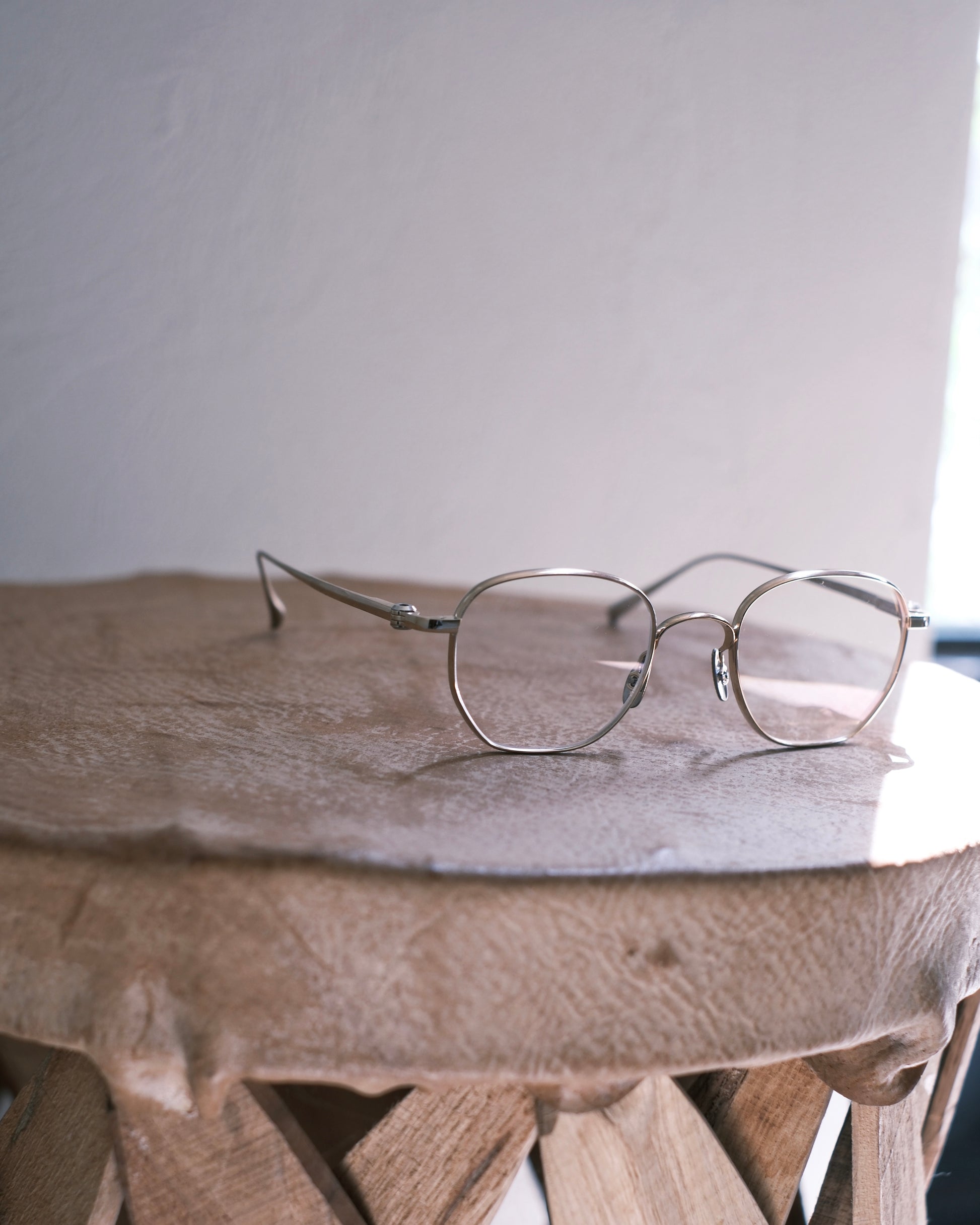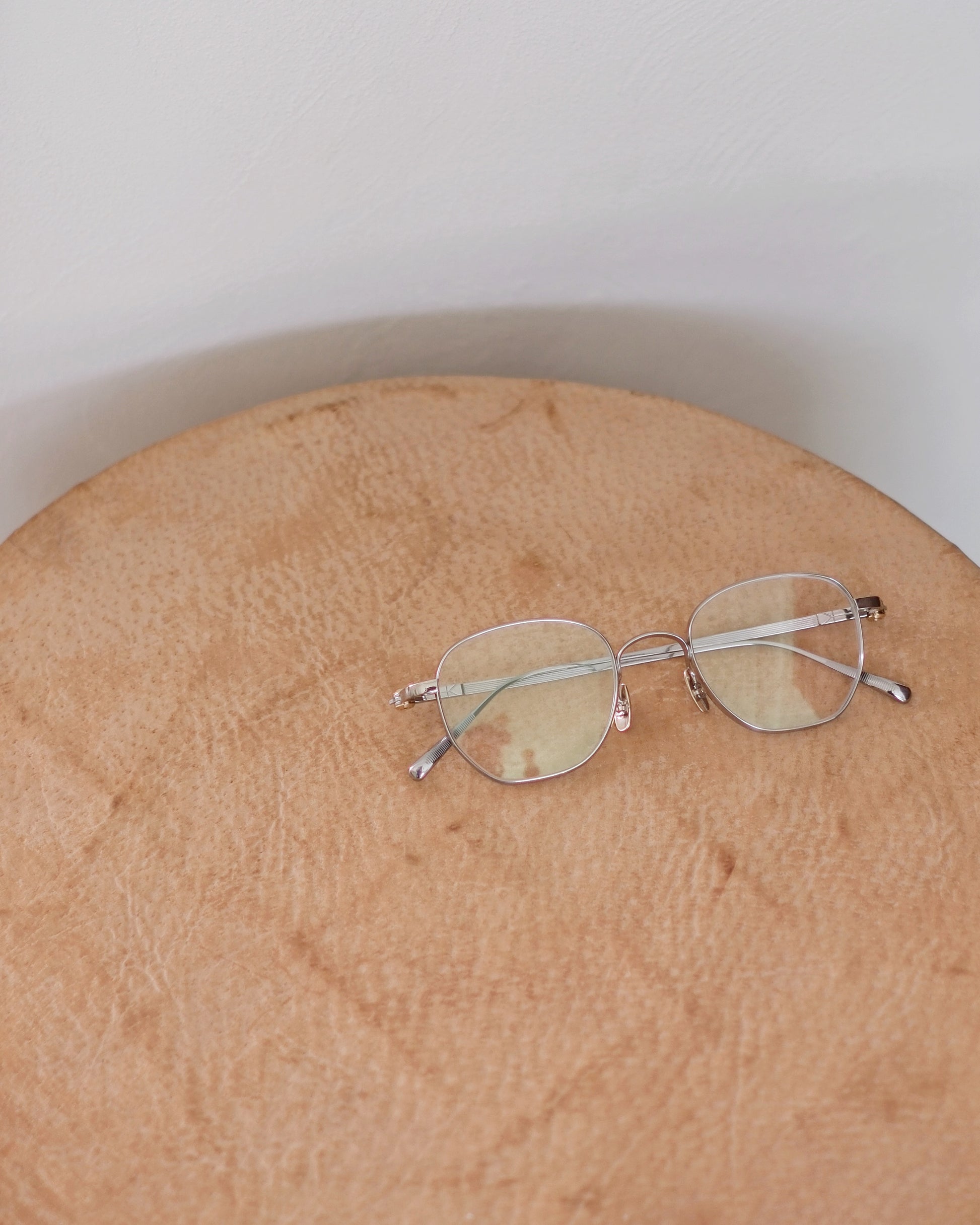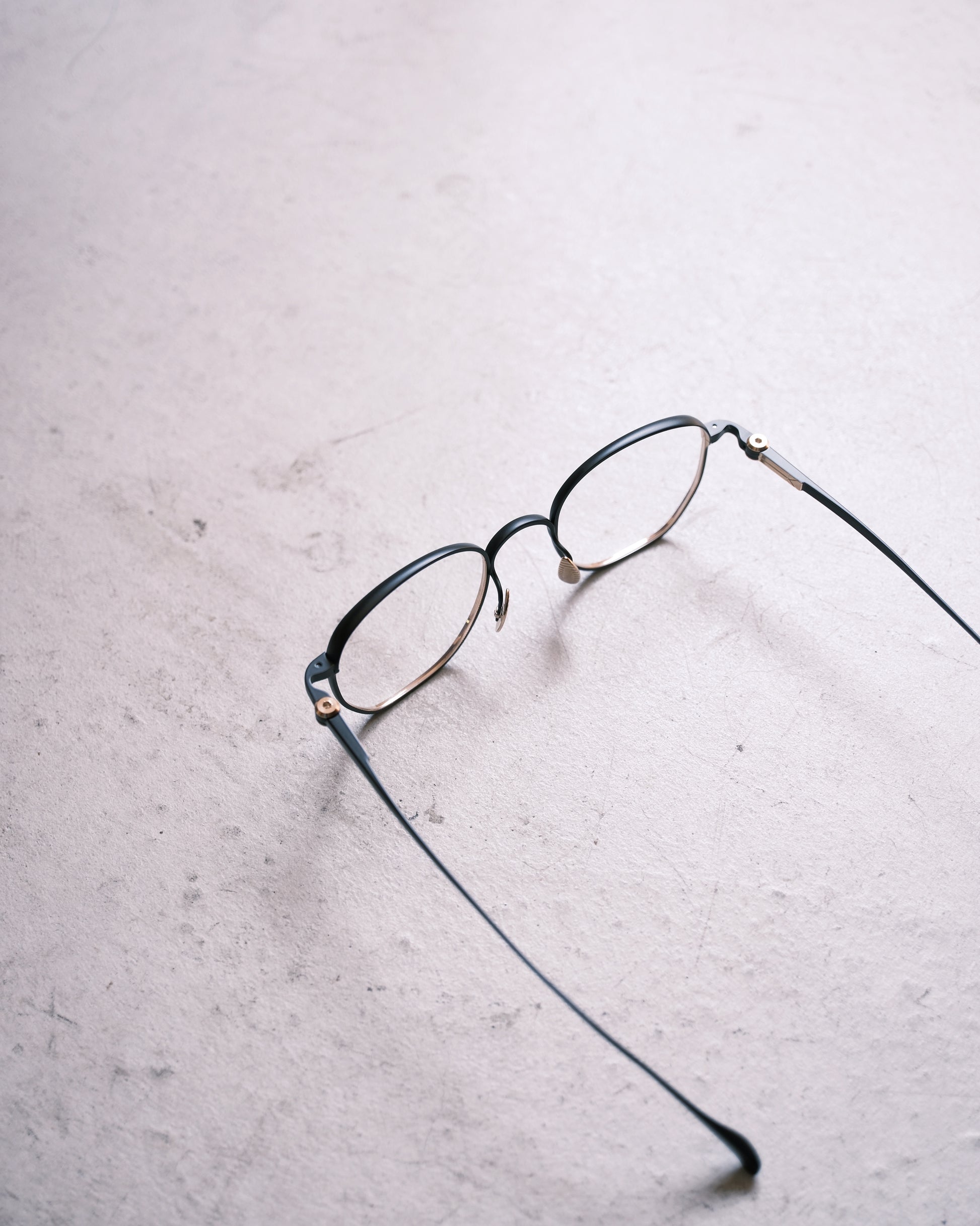 かっちり感のあるウェリントン型。横から見ると厚みがあるメタルで重厚感がありますが、正面から見ると線が細くミニマルな印象です。抜群な掛け心地を是非体感ください。
