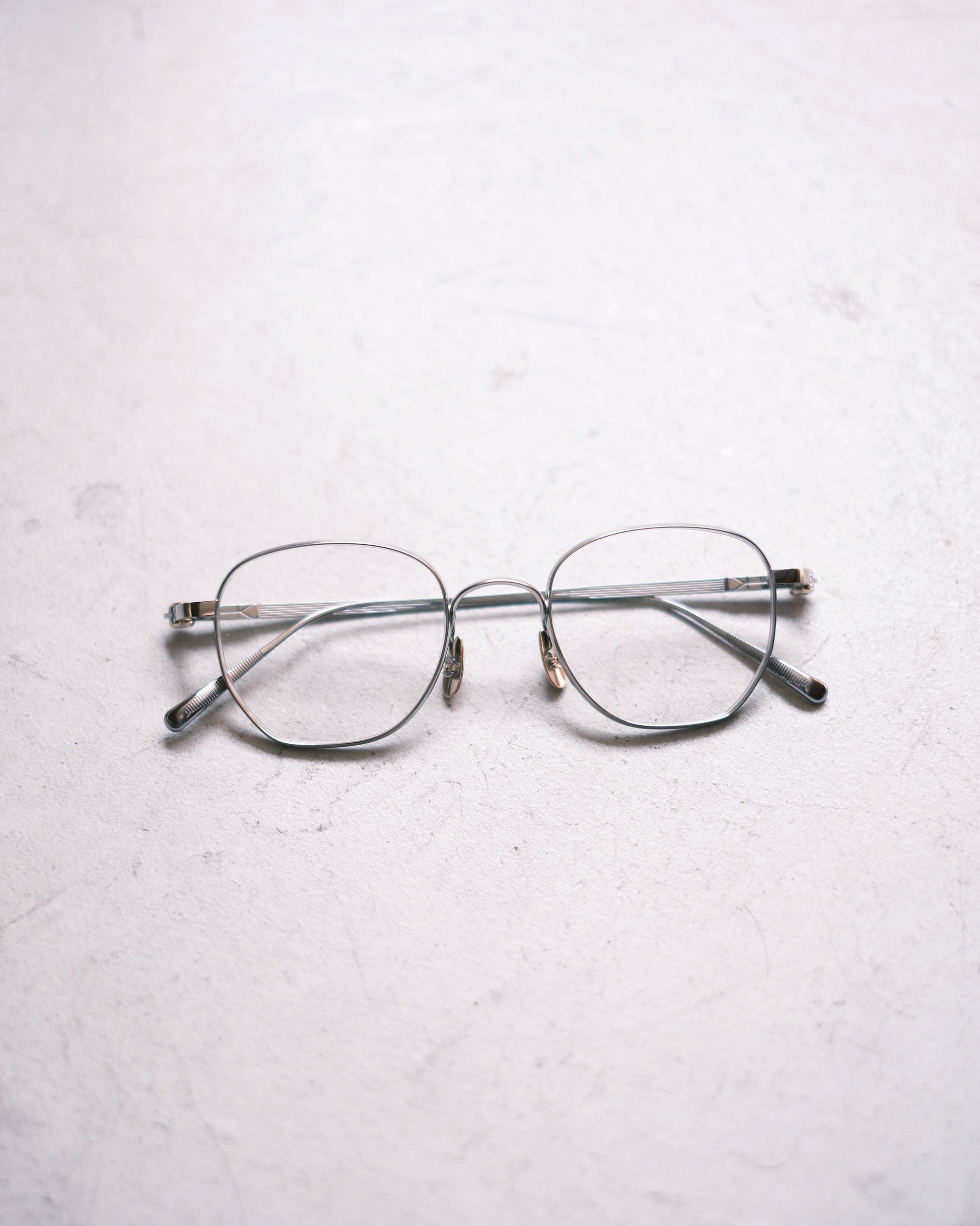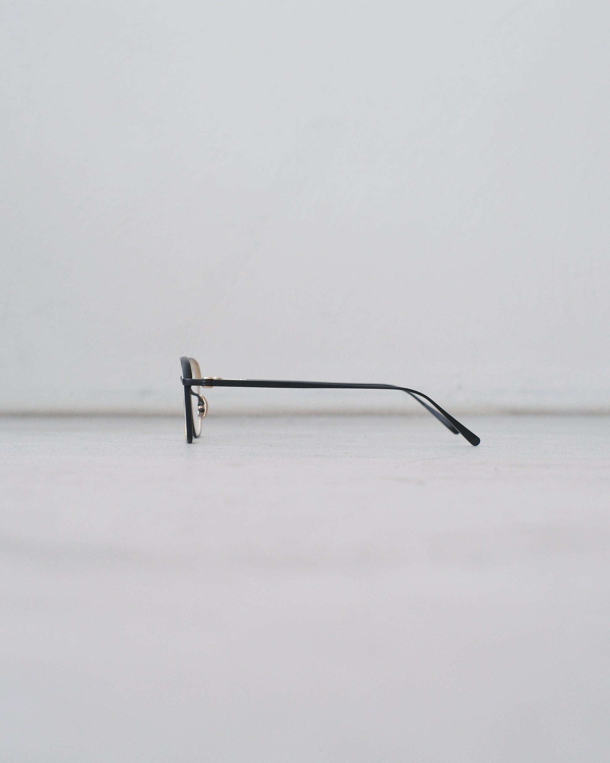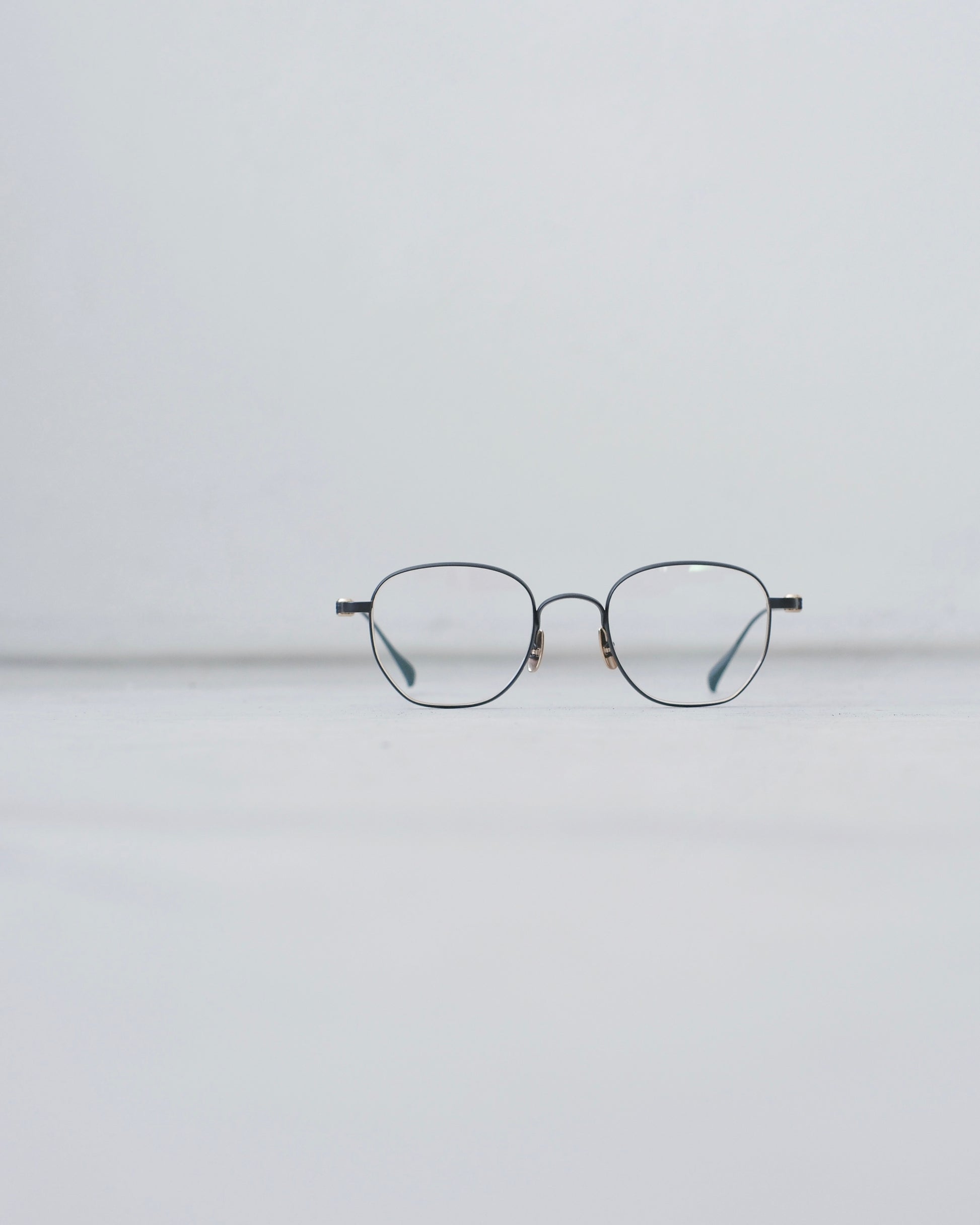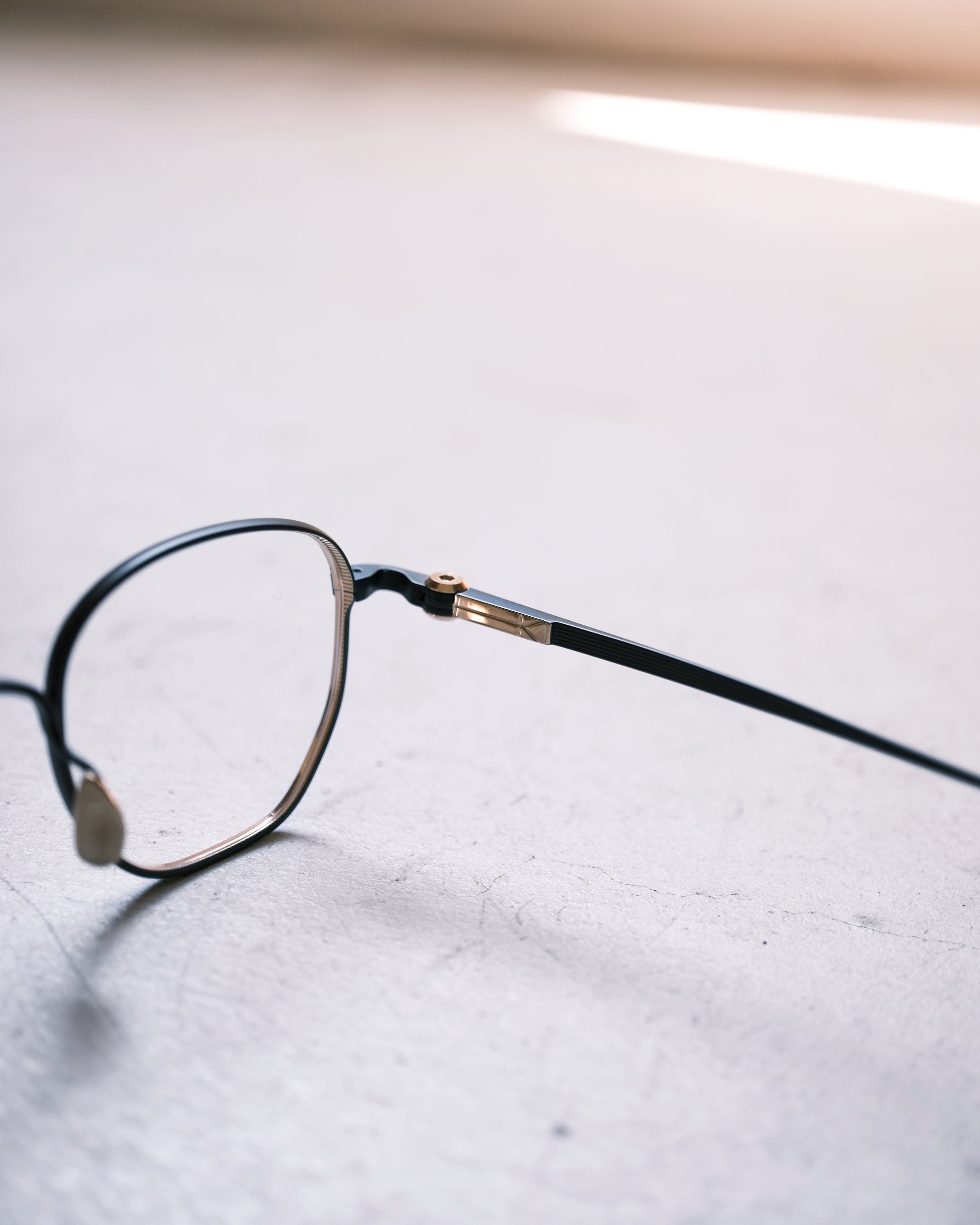かっちり感のあるウェリントン型。横から見ると厚みがあるメタルで重厚感がありますが、正面から見ると線が細くミニマルな印象です。抜群な掛け心地を是非体感ください。