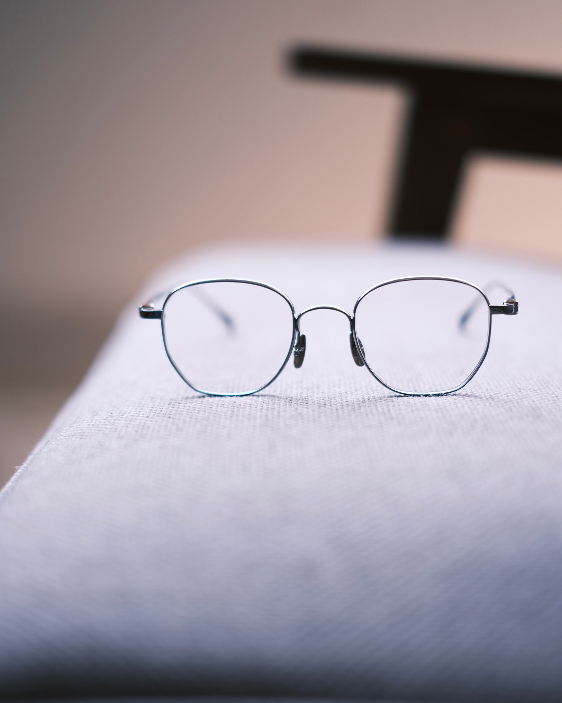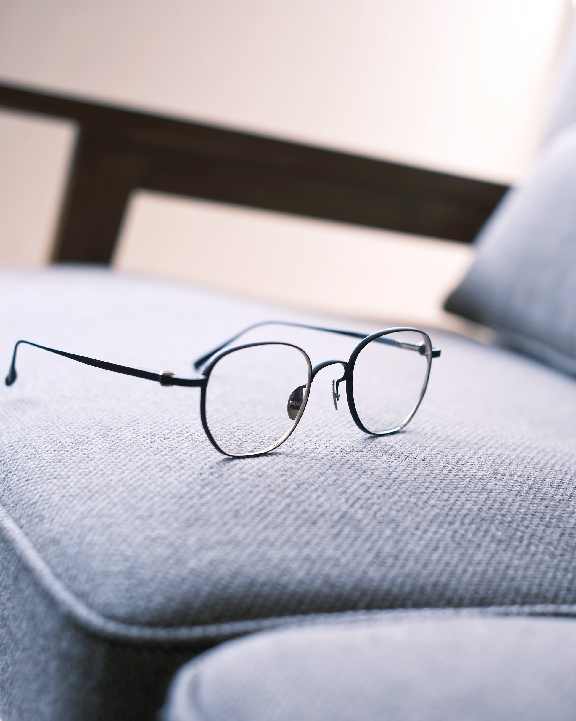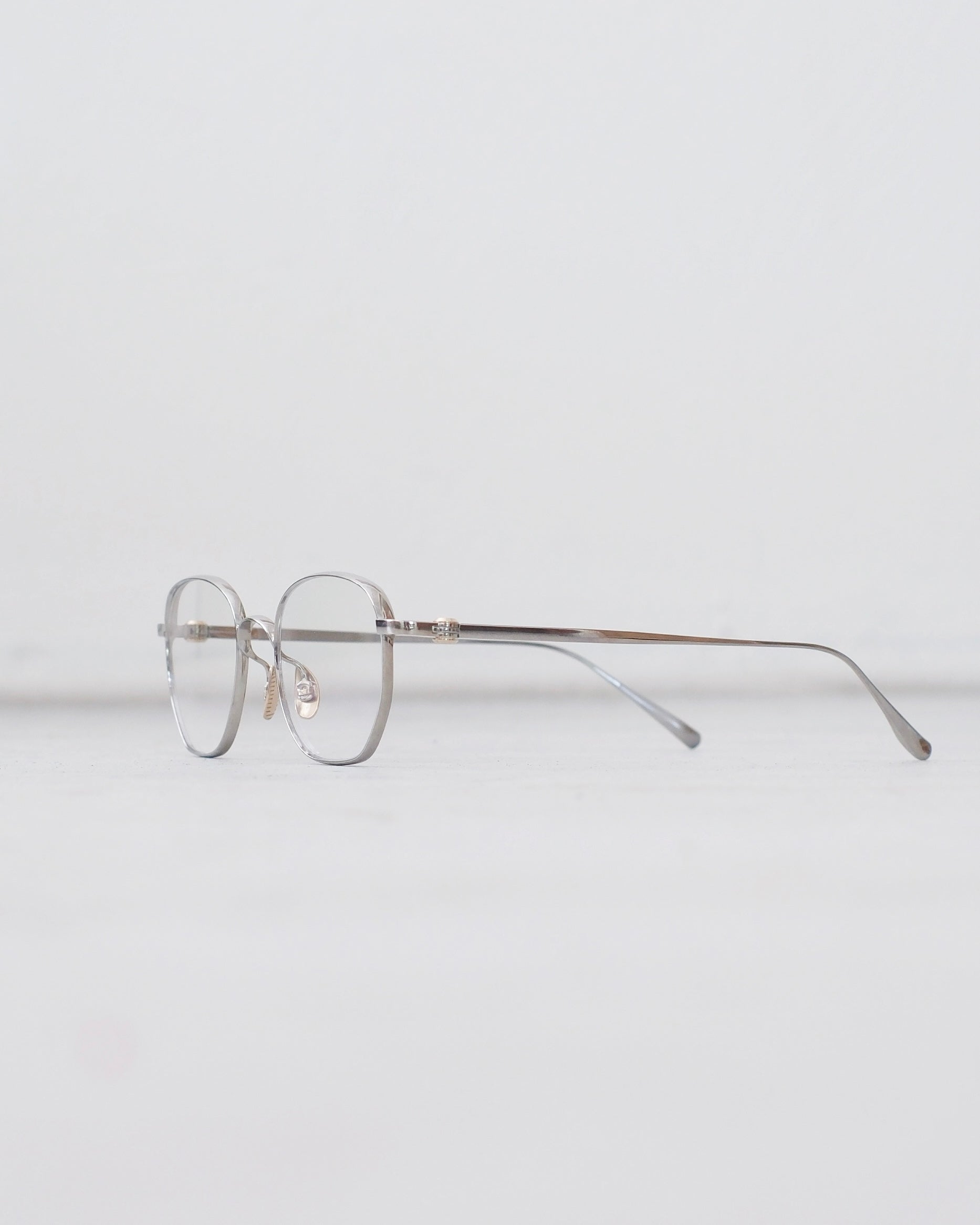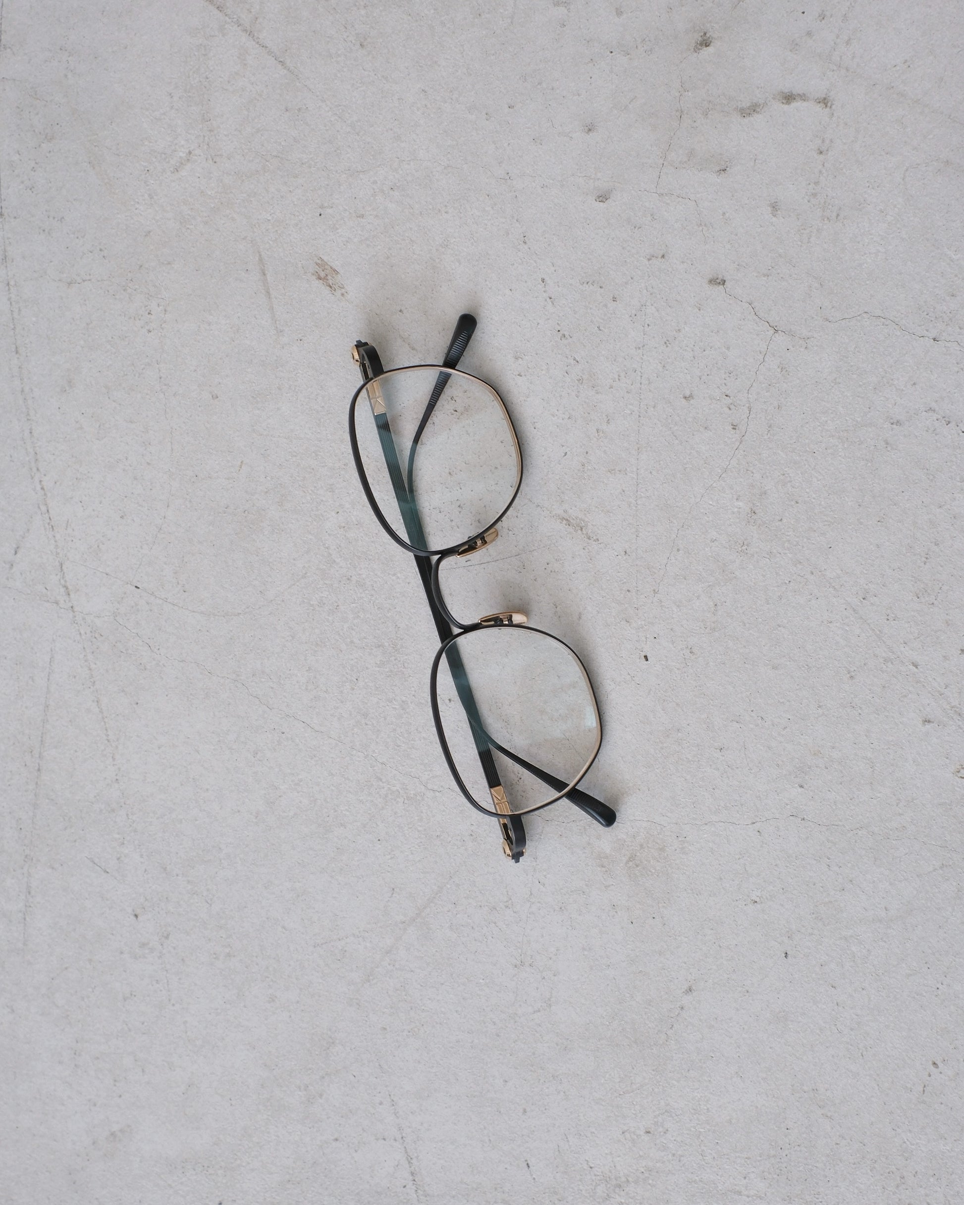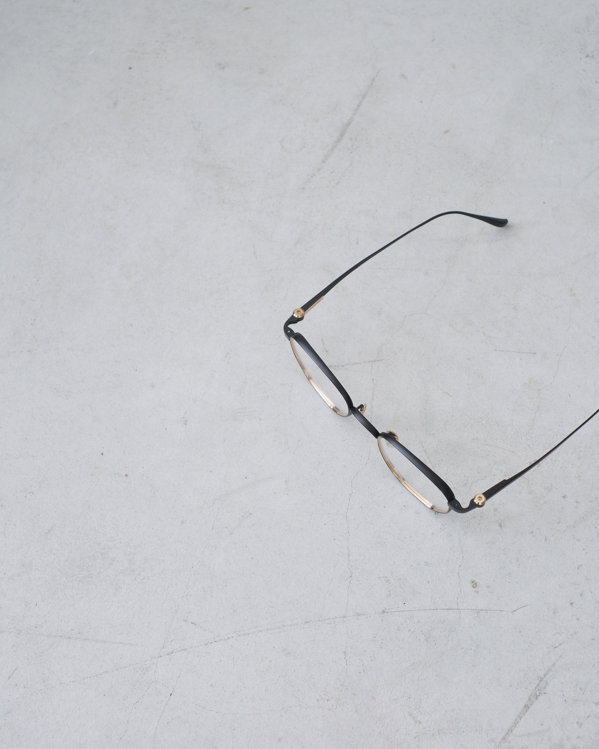 かっちり感のあるウェリントン型。横から見ると厚みがあるメタルで重厚感がありますが、正面から見ると線が細くミニマルな印象です。抜群な掛け心地を是非体感ください。