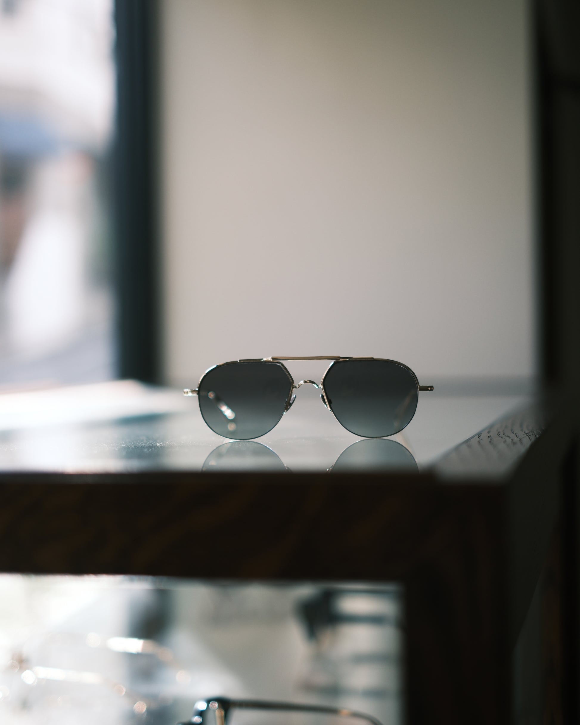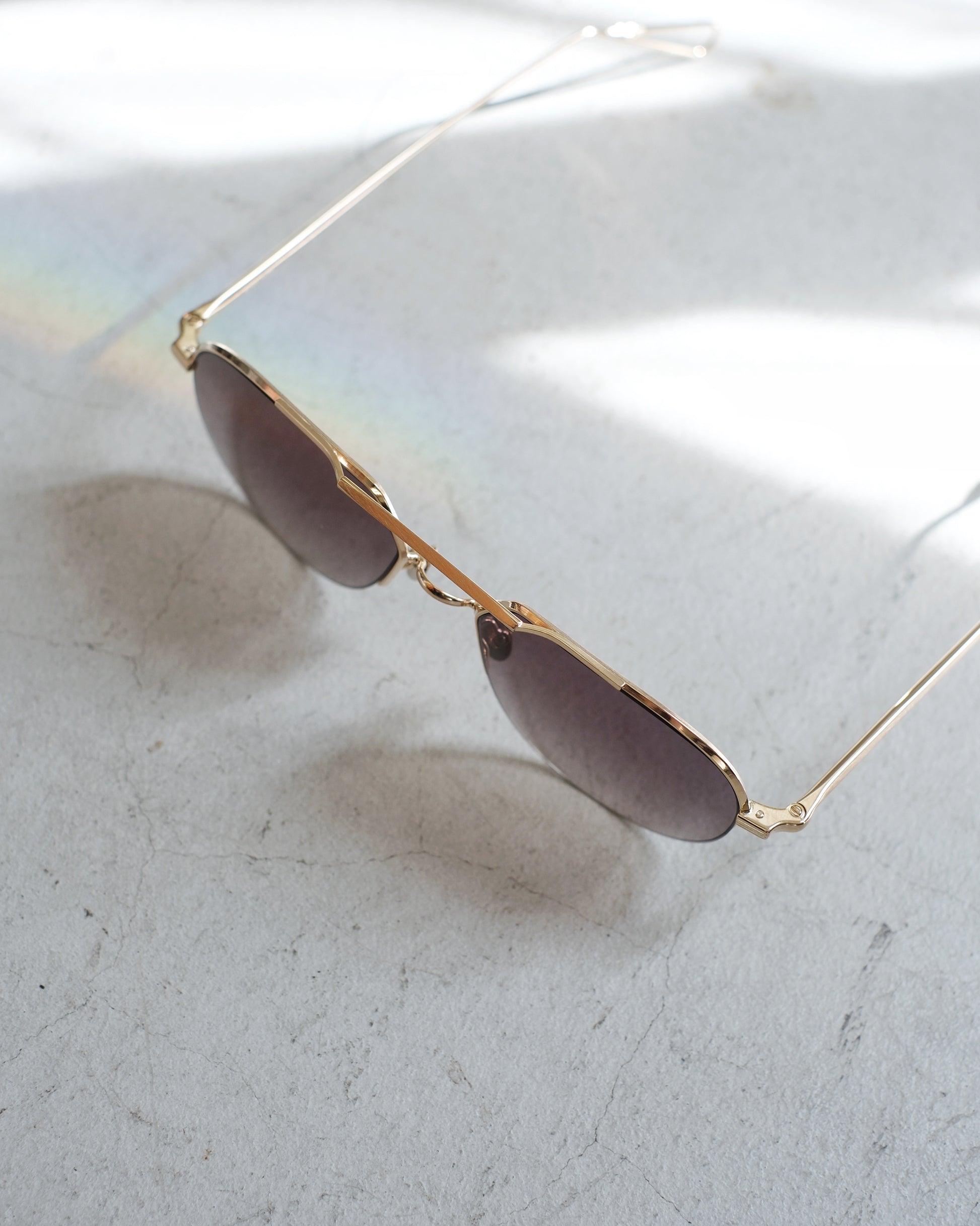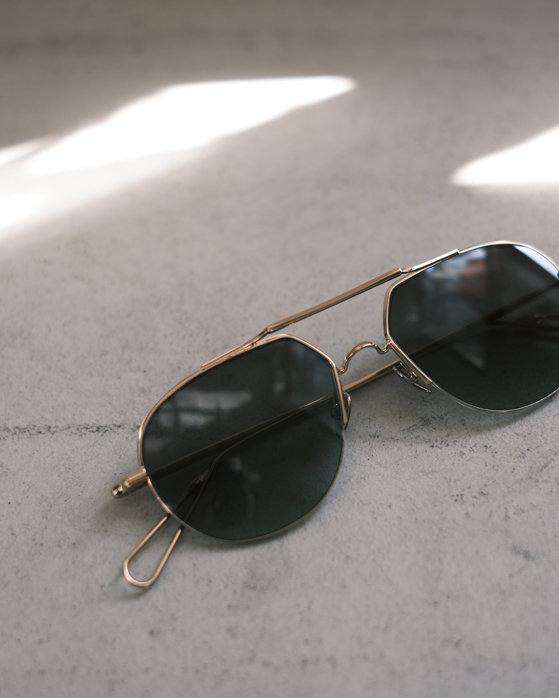 ヴィンテージのパイロットサングラスのような雰囲気があるティアドロップ型のダブルブリッジ。立体的なブリッジや、リムレスのように見える細いリムのデザインなどのディテールの作り込みは、AHLEMならでは。メガネとしてクリアで掛けても◎