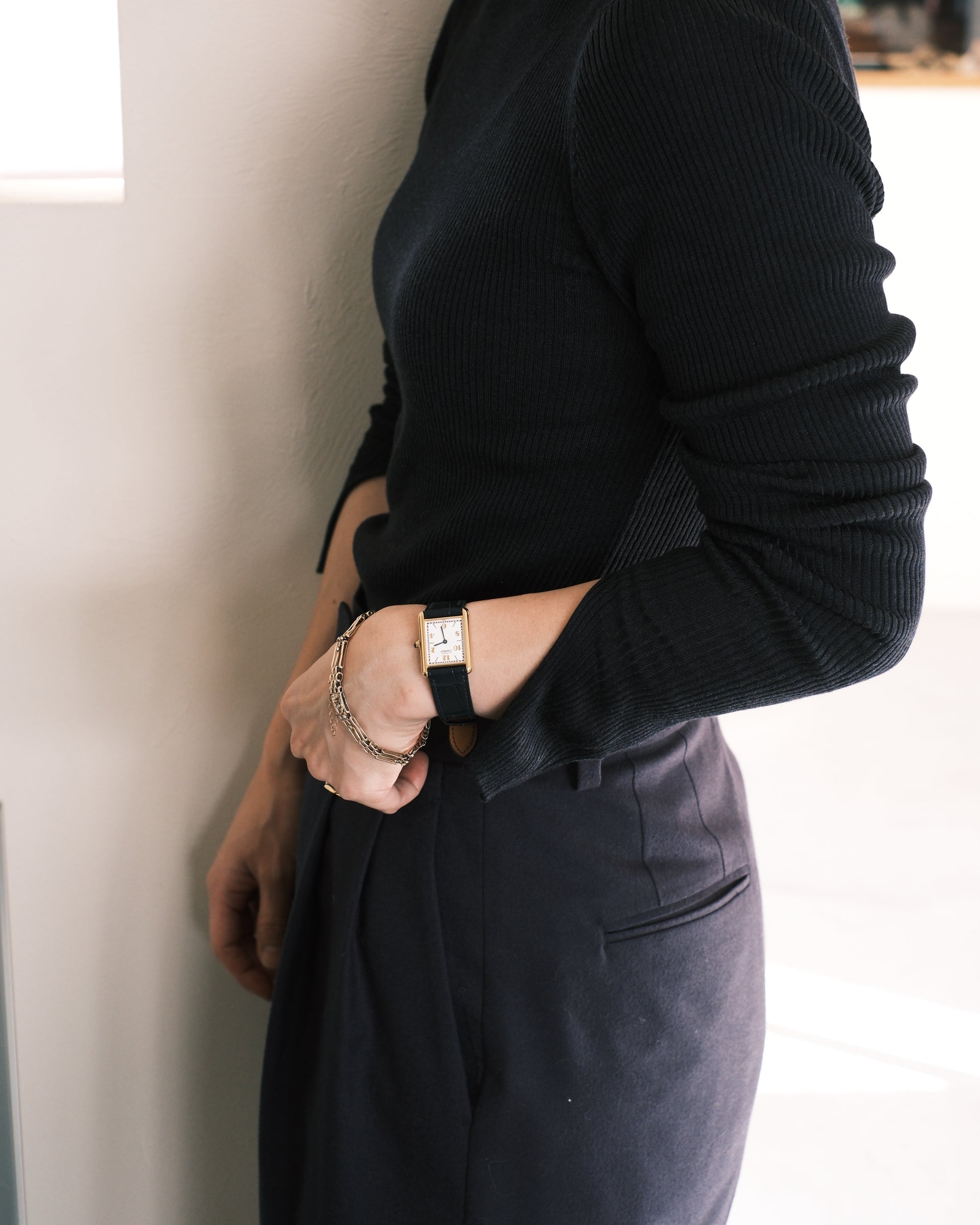 軽やかな雰囲気がありますが、ポップになりすぎず、上品さとのバランスはさすがカルティエです。『クラシック×遊び心』というようなデザインは、マストタンクの中でも特徴的で、他の時計でも見かけない雰囲気を持つ、マストタンクの中でも特に希少なモデル。