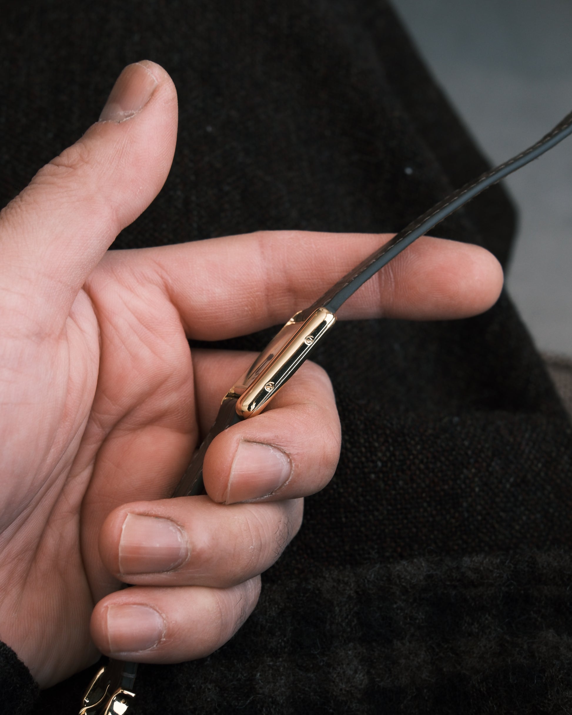 タンクケースの縦長シルエットと相性の良いデザイン。端正で非常に品があり、キリッとした美しさがあります。