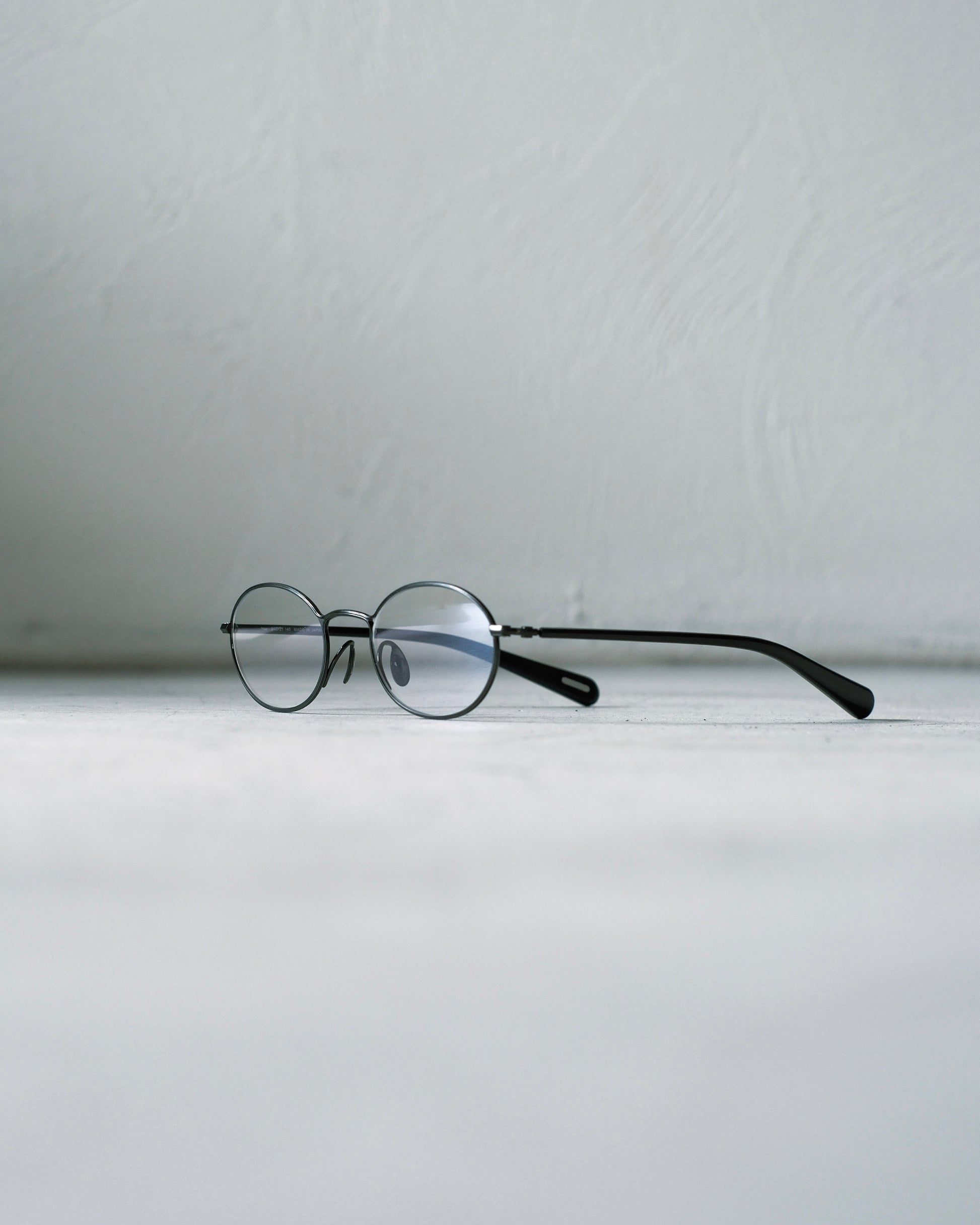 オーバルのメタルフレーム。天地の浅いフレームでトレンド感があります。カラーレンズとの相性抜群。YUICHI TOYAMA.らしい掛け心地の良いフレームです。